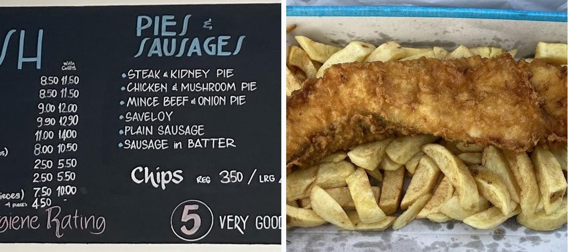 Must-try dishes include cod, haddock, and the classic fish and chips. The pies and onion rings also receive great reviews.