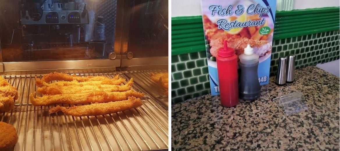 Warm, friendly atmosphere clean and bright. Staff are welcoming and friendly. Food...they do a wicked cod and chips. Haven't found any other chippy who can match them. Good variety of food to choose from. Been coming here for years and as long as they are here will continue.